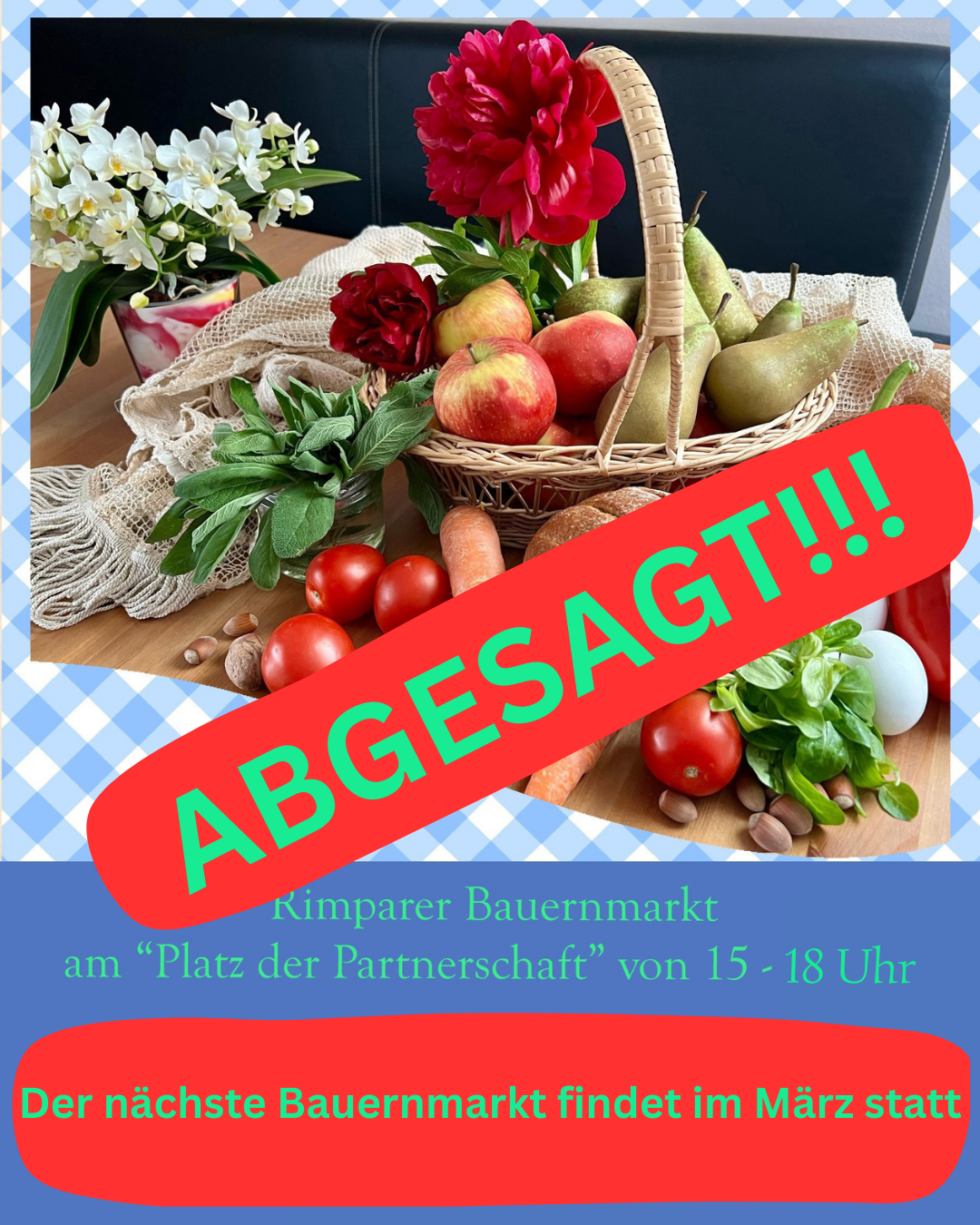 Aufgrund wetterbedingter Absagen fast aller Verkäufer wird der Rimparer Bauernmarkt im Februar nicht stattfinden. Der nächste Rimparer Bauernmarkt findet dann im März statt.