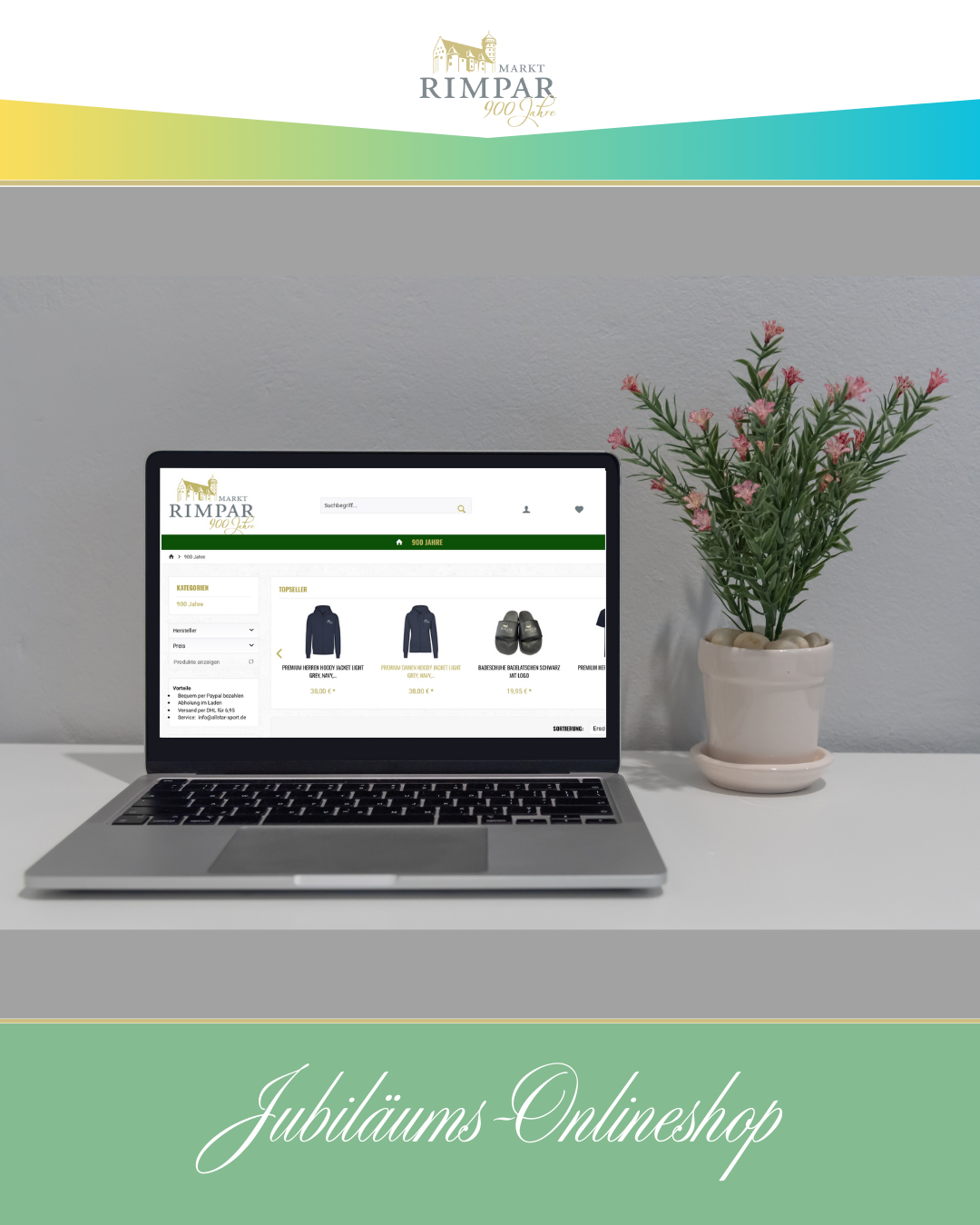 Von Hoodies bis Käppis, für das 900-jährige Ortsjubiläum hat der Markt Rimpar einen Jubiläums-Onlineshop eingerichtet, in dem sich alle Bürgerinnen und Bürger mit Artikeln im Jubiläumslook zum Festjahr ausstatten können. [...]